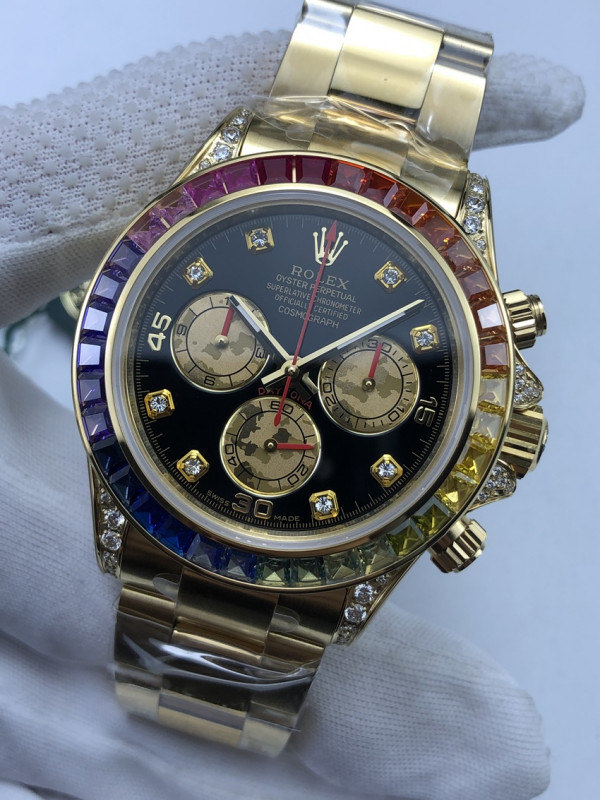 (준비완료/특급배송/예상수령5일)NO.77/JH공장 롤렉스 데이토나 옐로우골드 레인보우 바게티베젤 블랙다이얼 > 쇼핑